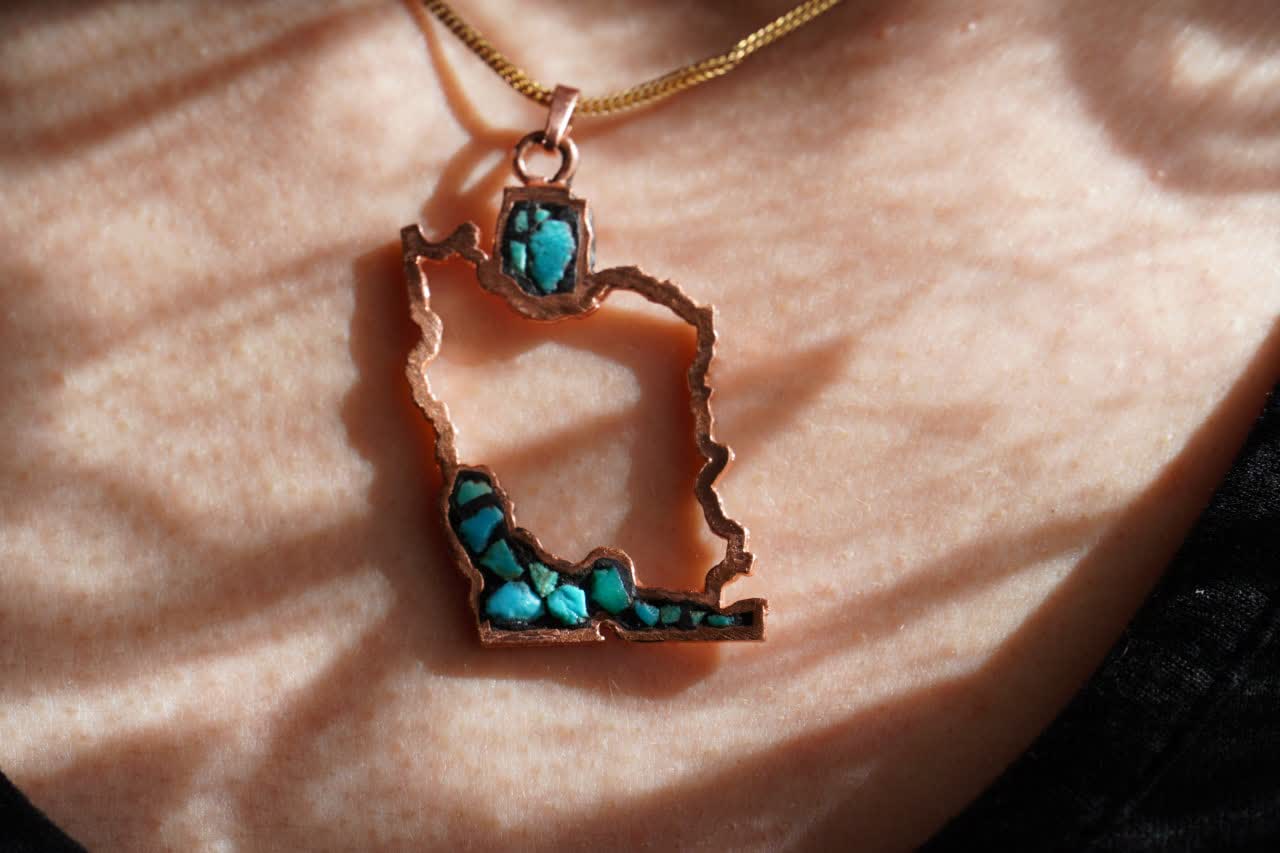 گردنبند ایران از مس و فیروزه نیشابور نماد اصالت و عشق به سرزمین